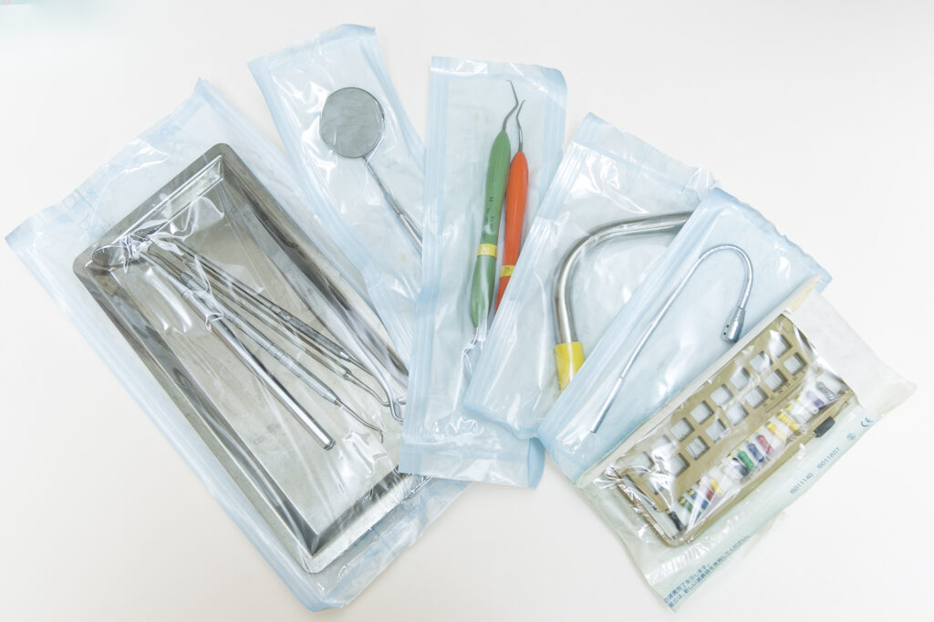 雑菌を通さない構造となっています。洗浄後、すぐに滅菌パックに入れます。当医院では滅菌パックを多用しています。