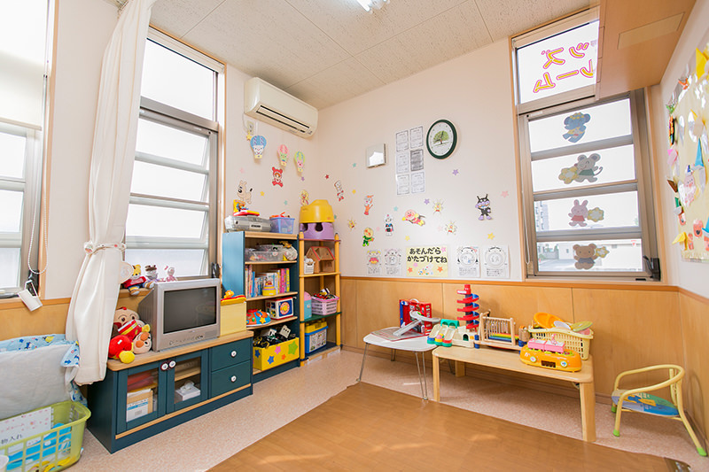 当院では、保育士が常駐するキッズルームを完備し、無料で利用できます。キッズルームにはぬり絵、おり紙、おもちゃ、DVDなどの遊びが用意されています。